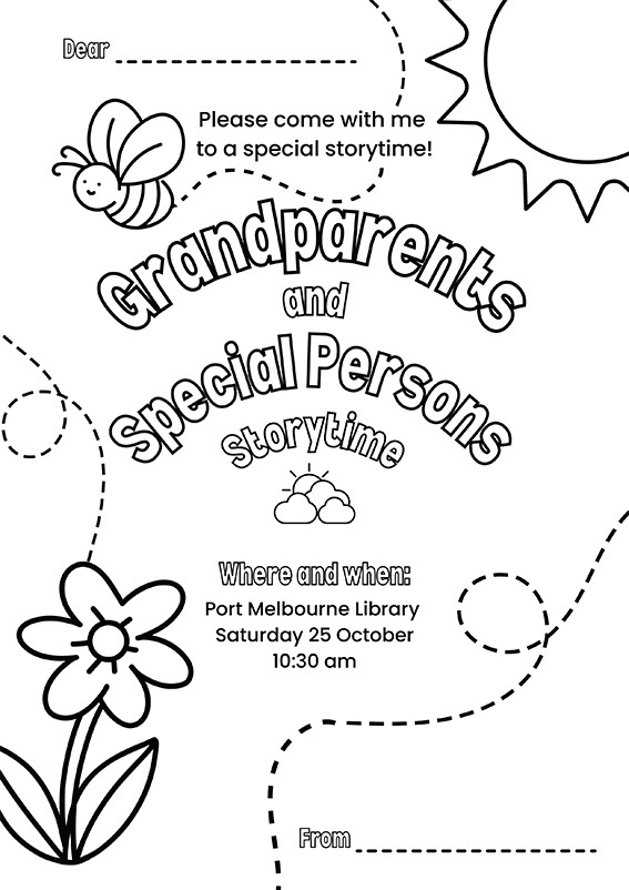 The day will include a Grandparents & Special Persons Storytime at 10:30 am. Children are encouraged to invite their grandparents or special someone along. We have created a special invitation drawing we encourage you all to use to invite your family along. You can download it via the link below or ask us for a copy when you next visit our libraries.